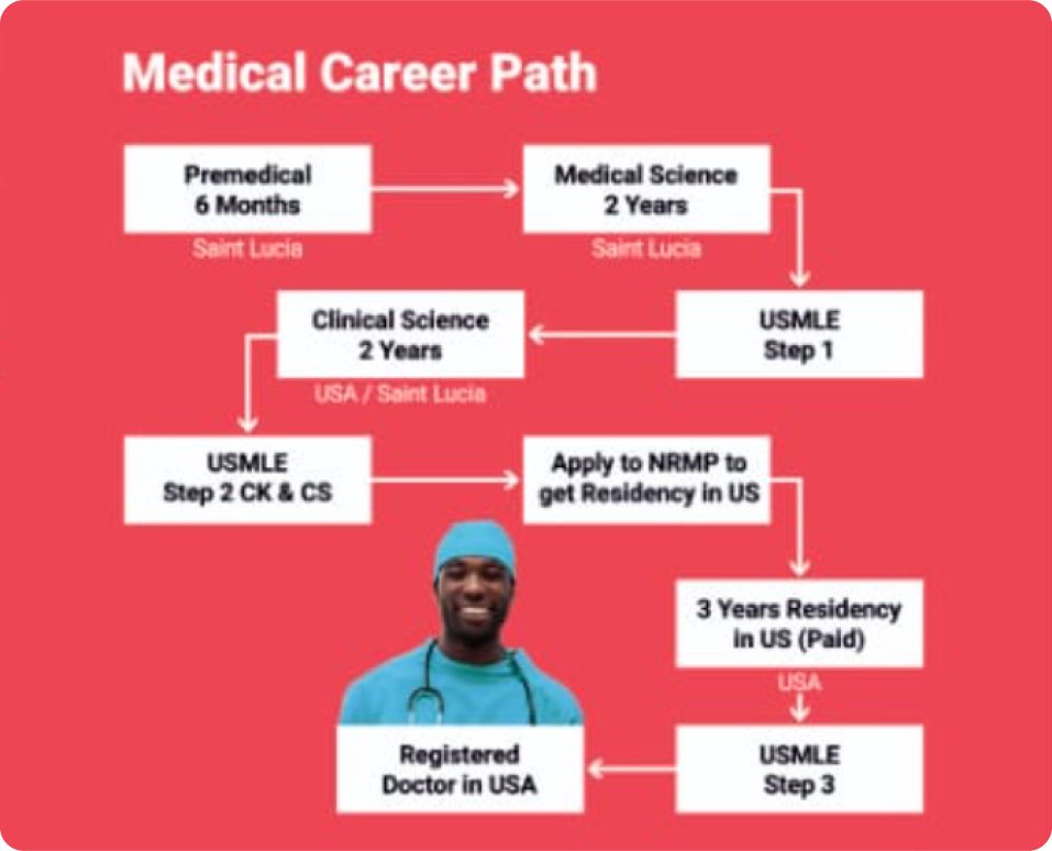 Once You started second year study MBBS in Saint Lucia, You can start A1-German language study online, during weekend. If you study punctually, can complete your B2 study while You complete your graduation. During internship, you can prepare for examination and can attend B2 examination. Once cleared B2, You can move to Germany for FSP(C1) & followed by examination and to Specialisation(Residency), and you can get a decent income during this period. This is a very cheap way to complete your specialisation & start a World class Career with wonderful remuneration. Contact us for further details and information.